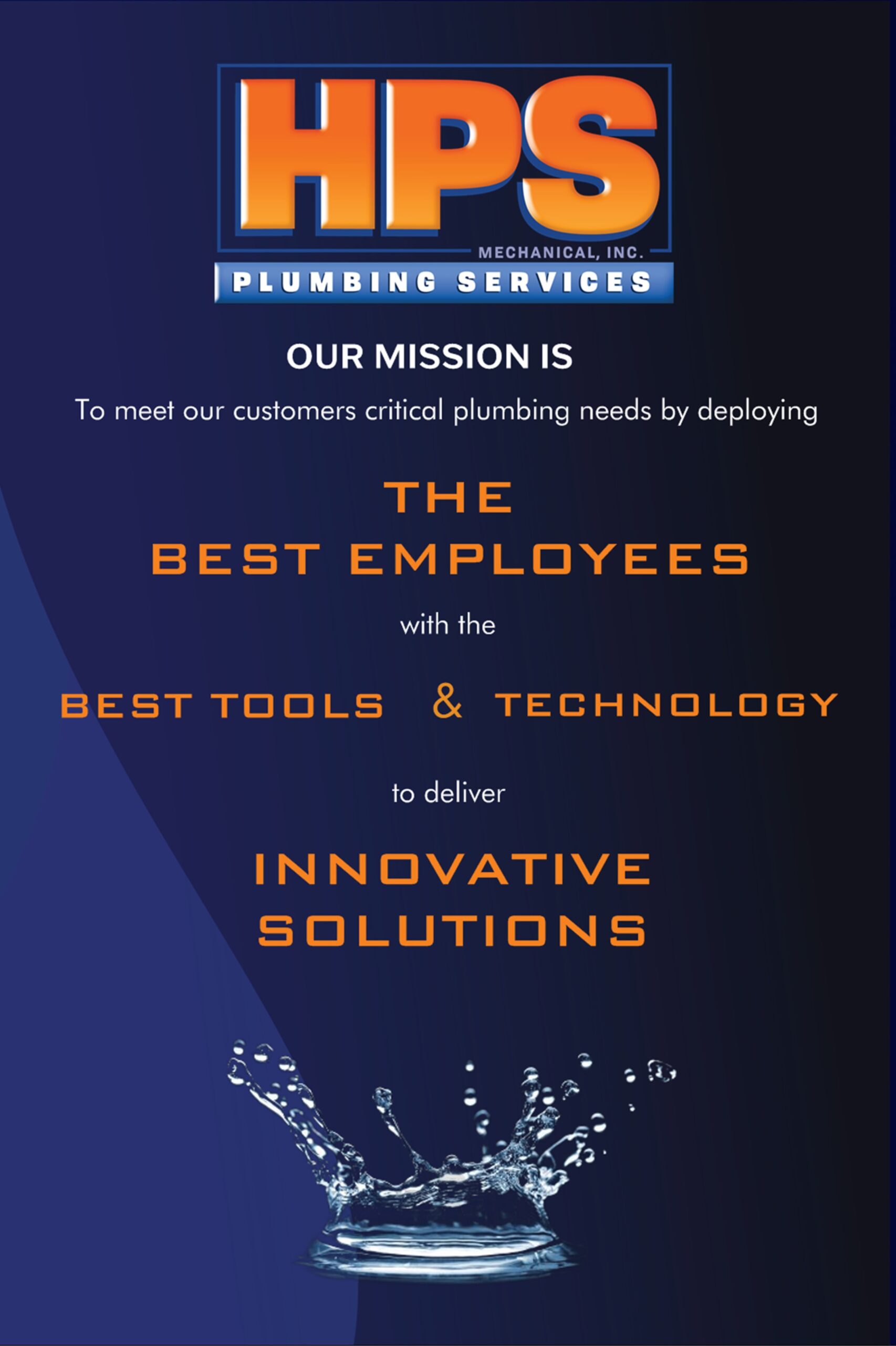 Mission: Our mission is to meet our customers critical plumbing needs by deploying the best employees with the best tools and technology to deliver innovative solutions.